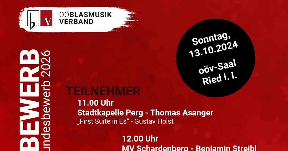 Der Österreichische Blasmusikverband lädt ein zum Bundesbewerb in der Stufe B und zum Bewerb Austrian Nationals for Brass Bands am 19. Oktober 2024 im…