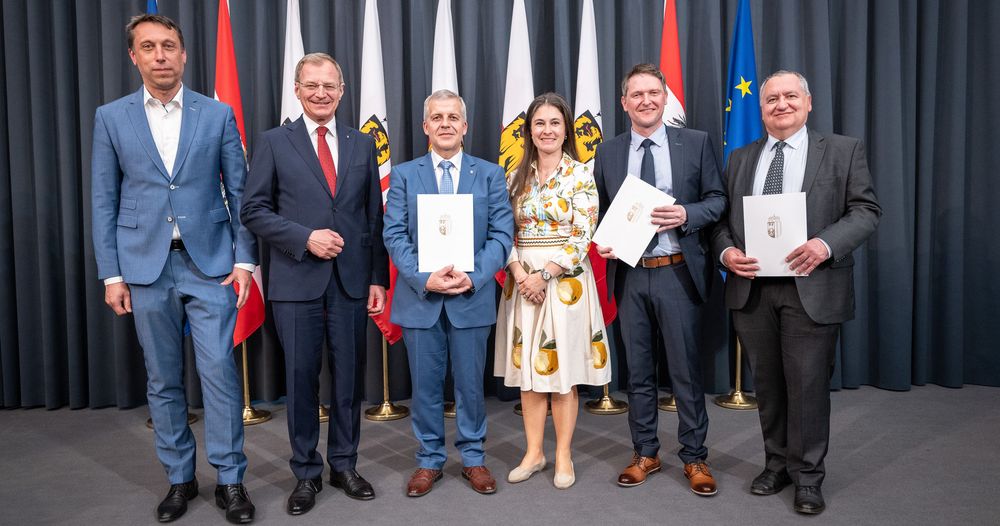 Verleihung des Titels "Konsulent für Musikpflege" für Präsident Hermann Pumberger, Vizepräsident Roland Fellner und Landes-EDV Referent Franz…