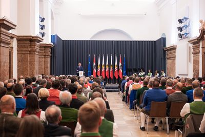 Bis auf den letzten Platz gefüllt war am 24. September der Steinerne Saal im Linzer Landhaus. Insgesamt 64 Musikvereine wurde von Landeshauptmann Mag. Thomas Stelzer für Ihre Verdienste geehrt. Grundlage für diese Ehrung sind fünf Teilnahmen an Konzertwertungen sowie drei Teilnahmen an Marschwertungen seit der letzten Ehrung.