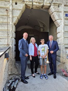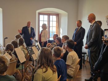 Einen besonderen Tag erlebten die Jungmusiker*innen des Blasmusikbezirkes Kirchdorf am 25. August auf Burg Altpernstein: Bundeskanzler Christian Stocker besuchte in Begleitung von Landeshauptmann Thomas Stelzer, Landesrat Christian Dörfel und Landtagsabgeordnete Doris Staudinger das jährlich stattfindende Music Camp. Er nahm sich Zeit für Gespräche mit den Kindern und dem Betreuerteam und zeigte dabei auch seine persönliche Begeisterung für Musik.